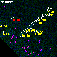 Black segments are analyzed here. Roll mouse over color images to view segments. Best viewed in a wide browser window (1200 pixels or more). Download SED & P(z) plots to view larger versions.