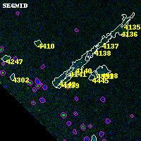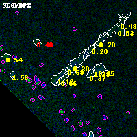 Black segments are analyzed here. Roll mouse over color images to view segments. Best viewed in a wide browser window (1200 pixels or more). Download SED & P(z) plots to view larger versions.