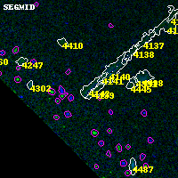 Black segments are analyzed here. Roll mouse over color images to view segments. Best viewed in a wide browser window (1200 pixels or more). Download SED & P(z) plots to view larger versions.