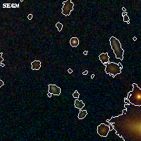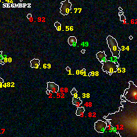 Black segments are analyzed here. Roll mouse over color images to view segments. Best viewed in a wide browser window (1200 pixels or more). Download SED & P(z) plots to view larger versions.