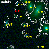 Black segments are analyzed here. Roll mouse over color images to view segments. Best viewed in a wide browser window (1200 pixels or more). Download SED & P(z) plots to view larger versions.
