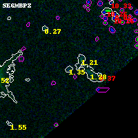 Black segments are analyzed here. Roll mouse over color images to view segments. Best viewed in a wide browser window (1200 pixels or more). Download SED & P(z) plots to view larger versions.