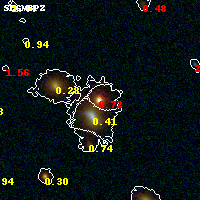 Black segments are analyzed here. Roll mouse over color images to view segments. Best viewed in a wide browser window (1200 pixels or more). Download SED & P(z) plots to view larger versions.