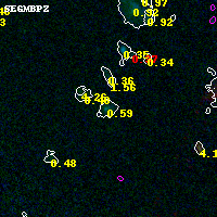 Black segments are analyzed here. Roll mouse over color images to view segments. Best viewed in a wide browser window (1200 pixels or more). Download SED & P(z) plots to view larger versions.