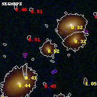Black segments are analyzed here. Roll mouse over color images to view segments. Best viewed in a wide browser window (1200 pixels or more). Download SED & P(z) plots to view larger versions.