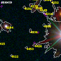 Black segments are analyzed here. Roll mouse over color images to view segments. Best viewed in a wide browser window (1200 pixels or more). Download SED & P(z) plots to view larger versions.