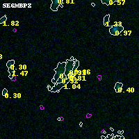Black segments are analyzed here. Roll mouse over color images to view segments. Best viewed in a wide browser window (1200 pixels or more). Download SED & P(z) plots to view larger versions.