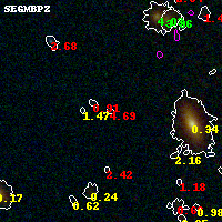 Black segments are analyzed here. Roll mouse over color images to view segments. Best viewed in a wide browser window (1200 pixels or more). Download SED & P(z) plots to view larger versions.
