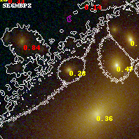Black segments are analyzed here. Roll mouse over color images to view segments. Best viewed in a wide browser window (1200 pixels or more). Download SED & P(z) plots to view larger versions.