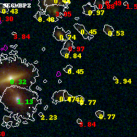 Black segments are analyzed here. Roll mouse over color images to view segments. Best viewed in a wide browser window (1200 pixels or more). Download SED & P(z) plots to view larger versions.