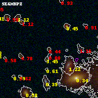 Black segments are analyzed here. Roll mouse over color images to view segments. Best viewed in a wide browser window (1200 pixels or more). Download SED & P(z) plots to view larger versions.