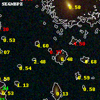 Black segments are analyzed here. Roll mouse over color images to view segments. Best viewed in a wide browser window (1200 pixels or more). Download SED & P(z) plots to view larger versions.