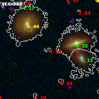 Black segments are analyzed here. Roll mouse over color images to view segments. Best viewed in a wide browser window (1200 pixels or more). Download SED & P(z) plots to view larger versions.