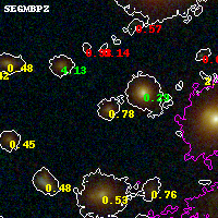 Black segments are analyzed here. Roll mouse over color images to view segments. Best viewed in a wide browser window (1200 pixels or more). Download SED & P(z) plots to view larger versions.