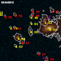 Black segments are analyzed here. Roll mouse over color images to view segments. Best viewed in a wide browser window (1200 pixels or more). Download SED & P(z) plots to view larger versions.