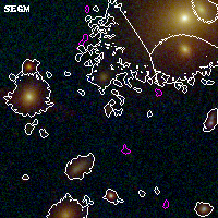 Black segments are analyzed here. Roll mouse over color images to view segments. Best viewed in a wide browser window (1200 pixels or more). Download SED & P(z) plots to view larger versions.