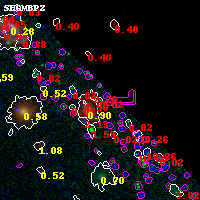 Black segments are analyzed here. Roll mouse over color images to view segments. Best viewed in a wide browser window (1200 pixels or more). Download SED & P(z) plots to view larger versions.