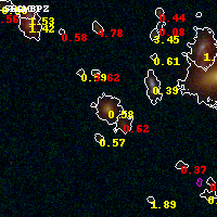 Black segments are analyzed here. Roll mouse over color images to view segments. Best viewed in a wide browser window (1200 pixels or more). Download SED & P(z) plots to view larger versions.