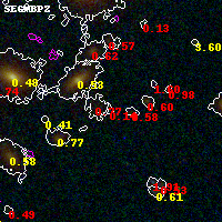 Black segments are analyzed here. Roll mouse over color images to view segments. Best viewed in a wide browser window (1200 pixels or more). Download SED & P(z) plots to view larger versions.