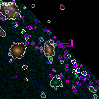 Black segments are analyzed here. Roll mouse over color images to view segments. Best viewed in a wide browser window (1200 pixels or more). Download SED & P(z) plots to view larger versions.