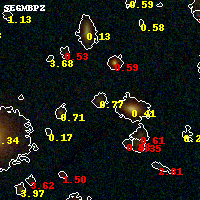 Black segments are analyzed here. Roll mouse over color images to view segments. Best viewed in a wide browser window (1200 pixels or more). Download SED & P(z) plots to view larger versions.