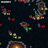Black segments are analyzed here. Roll mouse over color images to view segments. Best viewed in a wide browser window (1200 pixels or more). Download SED & P(z) plots to view larger versions.
