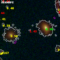Black segments are analyzed here. Roll mouse over color images to view segments. Best viewed in a wide browser window (1200 pixels or more). Download SED & P(z) plots to view larger versions.