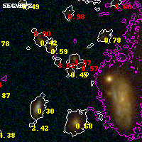 Black segments are analyzed here. Roll mouse over color images to view segments. Best viewed in a wide browser window (1200 pixels or more). Download SED & P(z) plots to view larger versions.