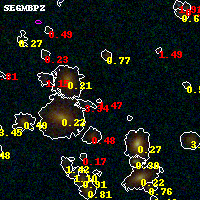 Black segments are analyzed here. Roll mouse over color images to view segments. Best viewed in a wide browser window (1200 pixels or more). Download SED & P(z) plots to view larger versions.