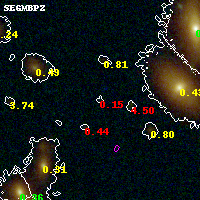 Black segments are analyzed here. Roll mouse over color images to view segments. Best viewed in a wide browser window (1200 pixels or more). Download SED & P(z) plots to view larger versions.