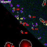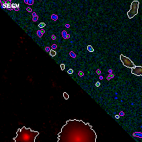 Black segments are analyzed here. Roll mouse over color images to view segments. Best viewed in a wide browser window (1200 pixels or more). Download SED & P(z) plots to view larger versions.