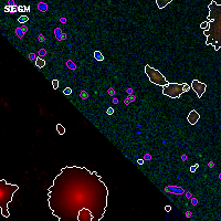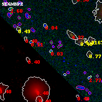 Black segments are analyzed here. Roll mouse over color images to view segments. Best viewed in a wide browser window (1200 pixels or more). Download SED & P(z) plots to view larger versions.
