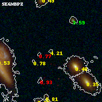 Black segments are analyzed here. Roll mouse over color images to view segments. Best viewed in a wide browser window (1200 pixels or more). Download SED & P(z) plots to view larger versions.
