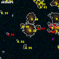 Black segments are analyzed here. Roll mouse over color images to view segments. Best viewed in a wide browser window (1200 pixels or more). Download SED & P(z) plots to view larger versions.