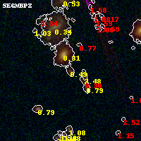 Black segments are analyzed here. Roll mouse over color images to view segments. Best viewed in a wide browser window (1200 pixels or more). Download SED & P(z) plots to view larger versions.