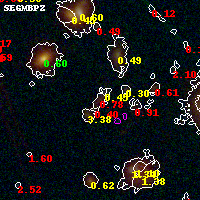 Black segments are analyzed here. Roll mouse over color images to view segments. Best viewed in a wide browser window (1200 pixels or more). Download SED & P(z) plots to view larger versions.