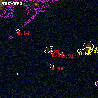 Black segments are analyzed here. Roll mouse over color images to view segments. Best viewed in a wide browser window (1200 pixels or more). Download SED & P(z) plots to view larger versions.