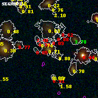 Black segments are analyzed here. Roll mouse over color images to view segments. Best viewed in a wide browser window (1200 pixels or more). Download SED & P(z) plots to view larger versions.