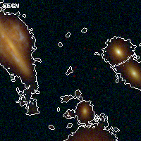 Black segments are analyzed here. Roll mouse over color images to view segments. Best viewed in a wide browser window (1200 pixels or more). Download SED & P(z) plots to view larger versions.