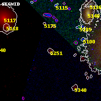 Black segments are analyzed here. Roll mouse over color images to view segments. Best viewed in a wide browser window (1200 pixels or more). Download SED & P(z) plots to view larger versions.