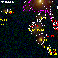 Black segments are analyzed here. Roll mouse over color images to view segments. Best viewed in a wide browser window (1200 pixels or more). Download SED & P(z) plots to view larger versions.