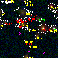 Black segments are analyzed here. Roll mouse over color images to view segments. Best viewed in a wide browser window (1200 pixels or more). Download SED & P(z) plots to view larger versions.