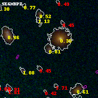 Black segments are analyzed here. Roll mouse over color images to view segments. Best viewed in a wide browser window (1200 pixels or more). Download SED & P(z) plots to view larger versions.