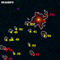 Black segments are analyzed here. Roll mouse over color images to view segments. Best viewed in a wide browser window (1200 pixels or more). Download SED & P(z) plots to view larger versions.