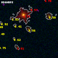 Black segments are analyzed here. Roll mouse over color images to view segments. Best viewed in a wide browser window (1200 pixels or more). Download SED & P(z) plots to view larger versions.