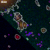 Black segments are analyzed here. Roll mouse over color images to view segments. Best viewed in a wide browser window (1200 pixels or more). Download SED & P(z) plots to view larger versions.