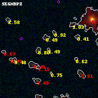 Black segments are analyzed here. Roll mouse over color images to view segments. Best viewed in a wide browser window (1200 pixels or more). Download SED & P(z) plots to view larger versions.