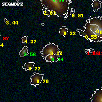 Black segments are analyzed here. Roll mouse over color images to view segments. Best viewed in a wide browser window (1200 pixels or more). Download SED & P(z) plots to view larger versions.