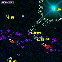Black segments are analyzed here. Roll mouse over color images to view segments. Best viewed in a wide browser window (1200 pixels or more). Download SED & P(z) plots to view larger versions.