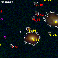 Black segments are analyzed here. Roll mouse over color images to view segments. Best viewed in a wide browser window (1200 pixels or more). Download SED & P(z) plots to view larger versions.